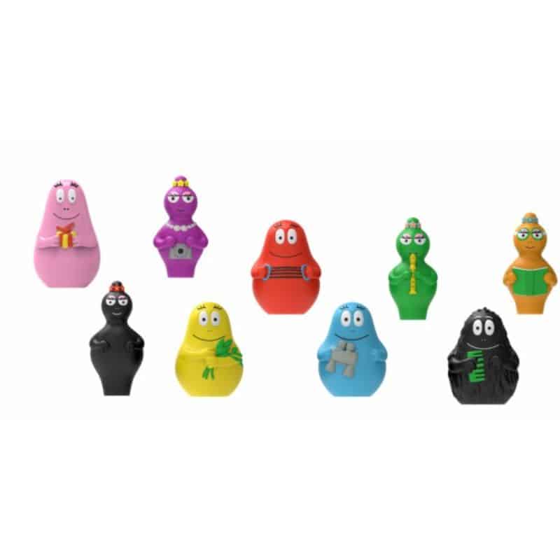 - Pakkauksessa on yhdeksän noin 8 cm korkuista rakastettua Barbapapaa, joista jokainen on oman mielipuuhansa parissa.
