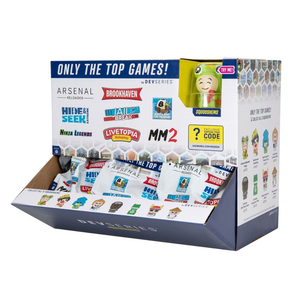 Hauskaa ja yllätys, puristettava figuuri. 8 erilaista keräiltävänä, minkä sinä saat? Jokaisen lelun mukana tulee eksklusiivinen pelikoodi Robloxiin.