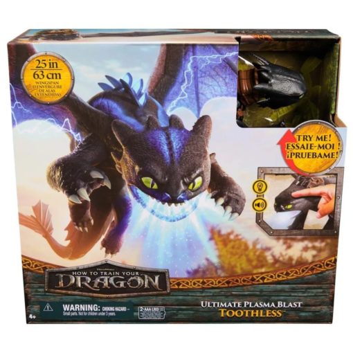 - Ystävysty DreamWorks- elokuvista tutun Toothless‑lohkareen kanssa – Ultimate Plasma Blast Toothless on upea valinta seikkailua rakastaville! Leikkisä hahmo avautuu kahdessa asennossa: syöksyasennosta siipien täyteen leveyteen, noin 63 cm (25″), kuten elokuvassa. Sormella aktivoitava “plasmapurkaukseen” lataus tuottaa sinisen valon ja äänekkään purkauksen – täydellinen visuaalinen ja auditiivinen tehokokemus.