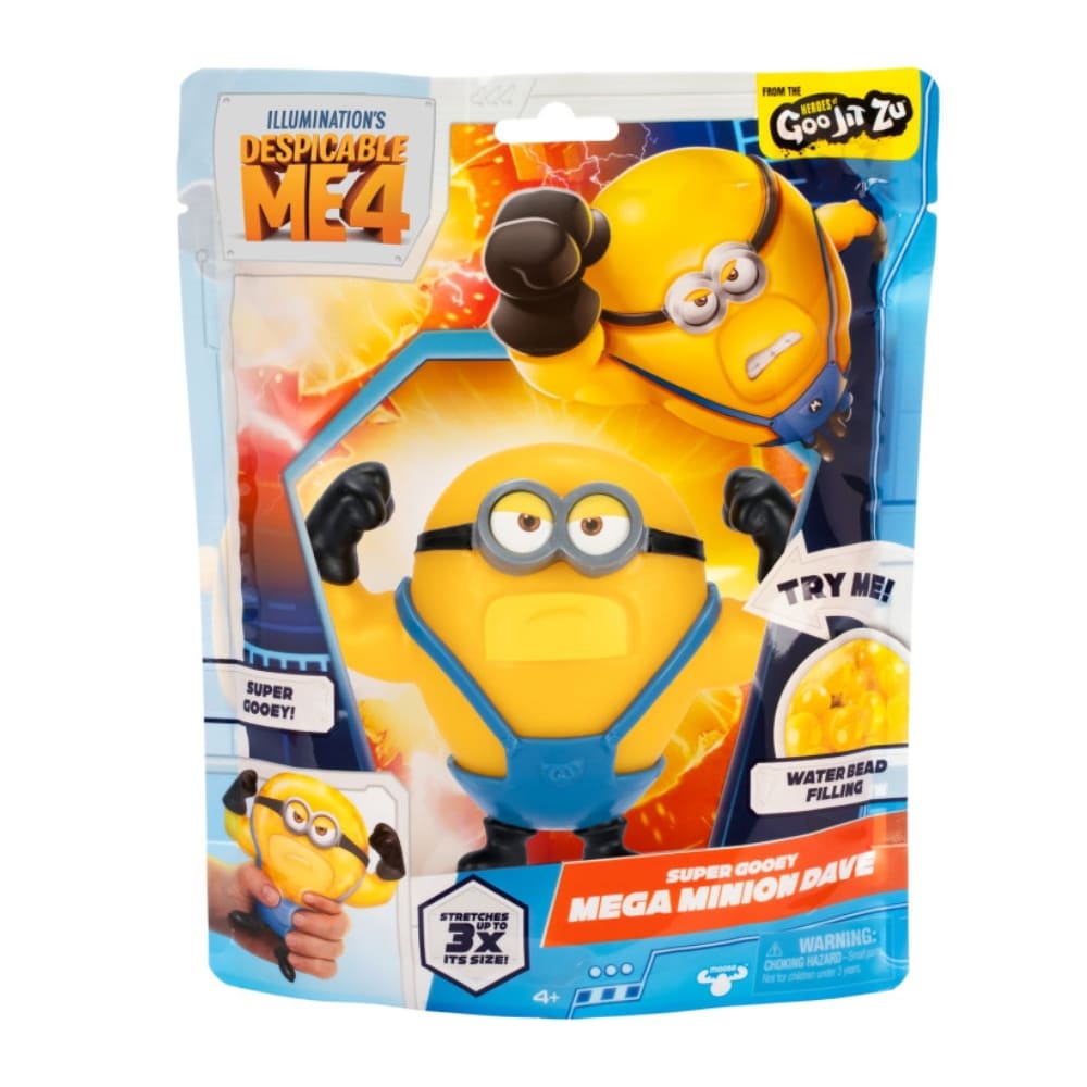 Goo Jit Zu Minions Dave Despicable Me4 – on joustava vesihelmitäytteinen figuuri, jota voi puristella ja vetää. Figuuri on todella, joustava joten sitä voi venyttää jopa kolmenkertaiseksi..