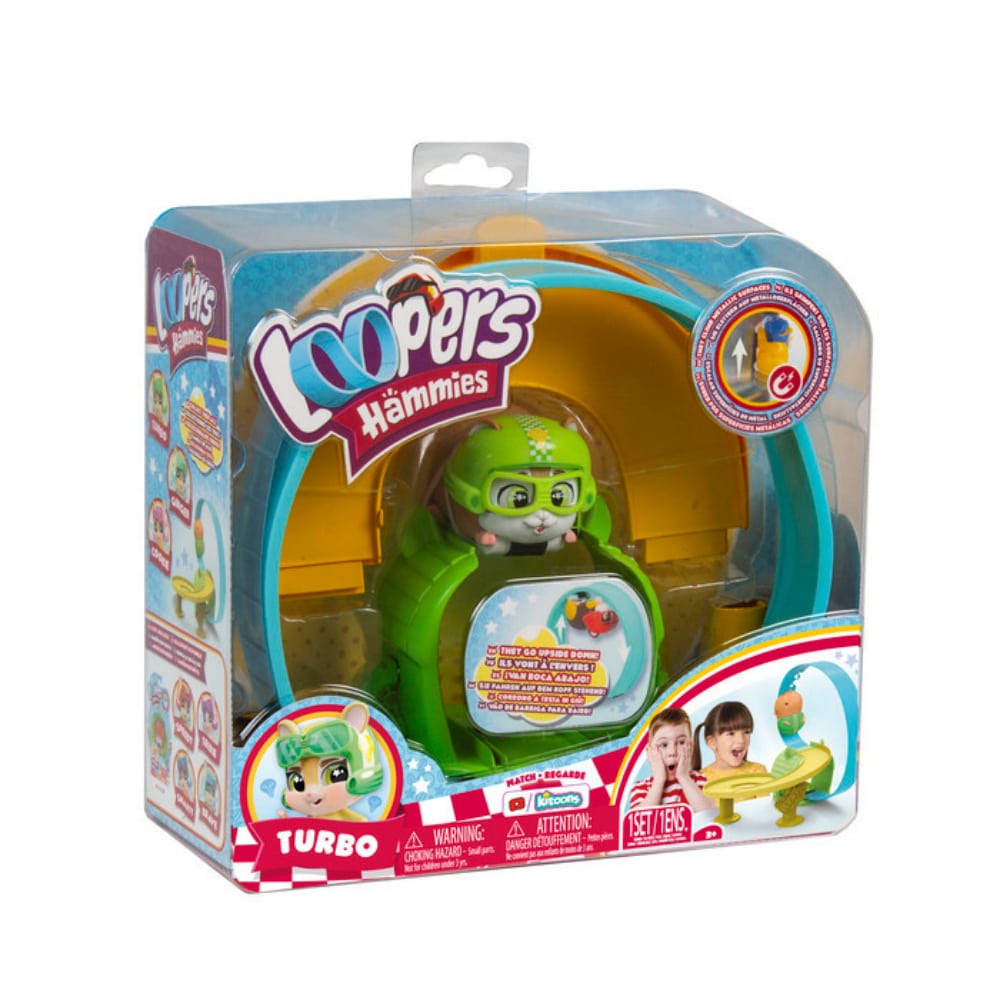 Loopers Hammies Turbo -leikkisetti ssä on vikkelä pieni hamsteri lemmikki, josta saat hauskan leikkikaverin! Loopers Hammies -leikkisetin mukana tulee radan osat, kotitalo ja vikkelä hamsteri. Muotoile ja yhdistele ratoja ja katso, kuinka lemmikki vipeltää 25 cm sekunnissa – jopa ylösalaisin! Hamsteri kipeää myös metallisia pintoja pitkin. Keräiltävänä on useita erilasia leikkisettejä, jotka kaikki myydään erikseen.