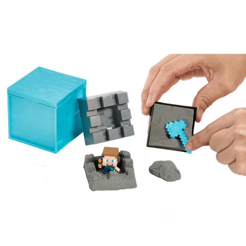 Autentiset Minecraft hahmot minikokoisina hahmoina. pakkauksessa on hahmon mukana 2 muotti osaa, muovailtavaa hiekkaa ja tarvike.