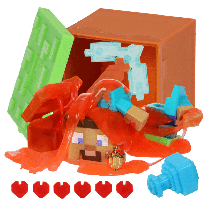 Löydä ja luo 12 Minecraft-suosikkihahmoasi mm. Alex, Steve, Zombie, Endermen, Creeper. Myydään erikseen. Jokaisella hahmolla on aarrearkku löydettävänä. Löydä harvinaisia aarteita, kuten timanttimiekkoja ja timantteja vai löydätkö Kultaisen omenan!