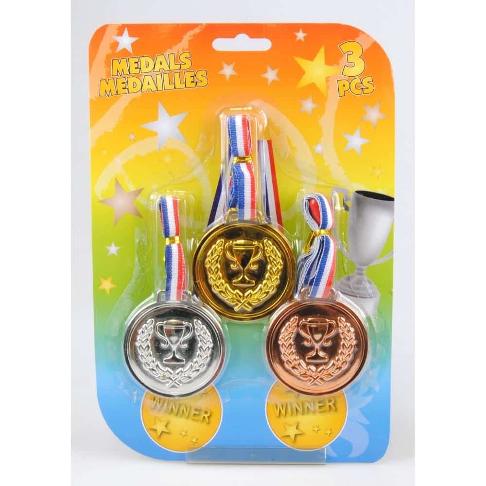 - Mitalit 3kpl – Kolme kevyttä kaulaan pujotettavaa mitalia. Kulta, hopea ja pronssi. Ikäsuositus: 3+