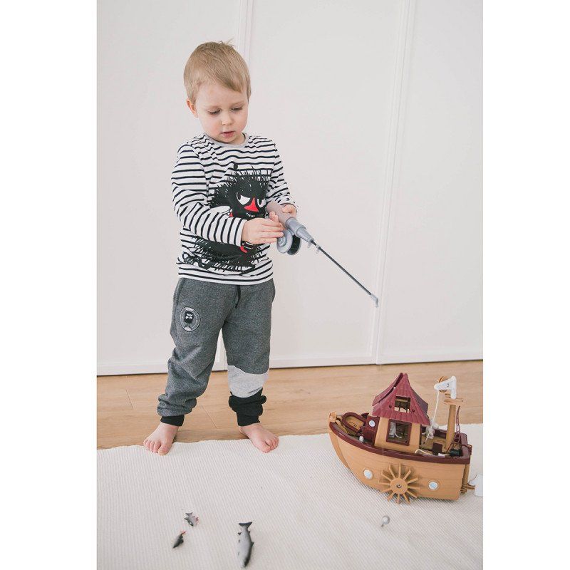 60-osaisen laivan ruumasta löytyy kaikki Muumimamman, Muumipapan, Muumipeikon, Niiskuneidin, Pikku Myyn ja Nipsun tarvitsemat huonekalut vesillä seilaavaan kotiin: kerrossänky, riippumatto, keittiö pöytineen, tuoleineen, patoineen ja pannuineen.