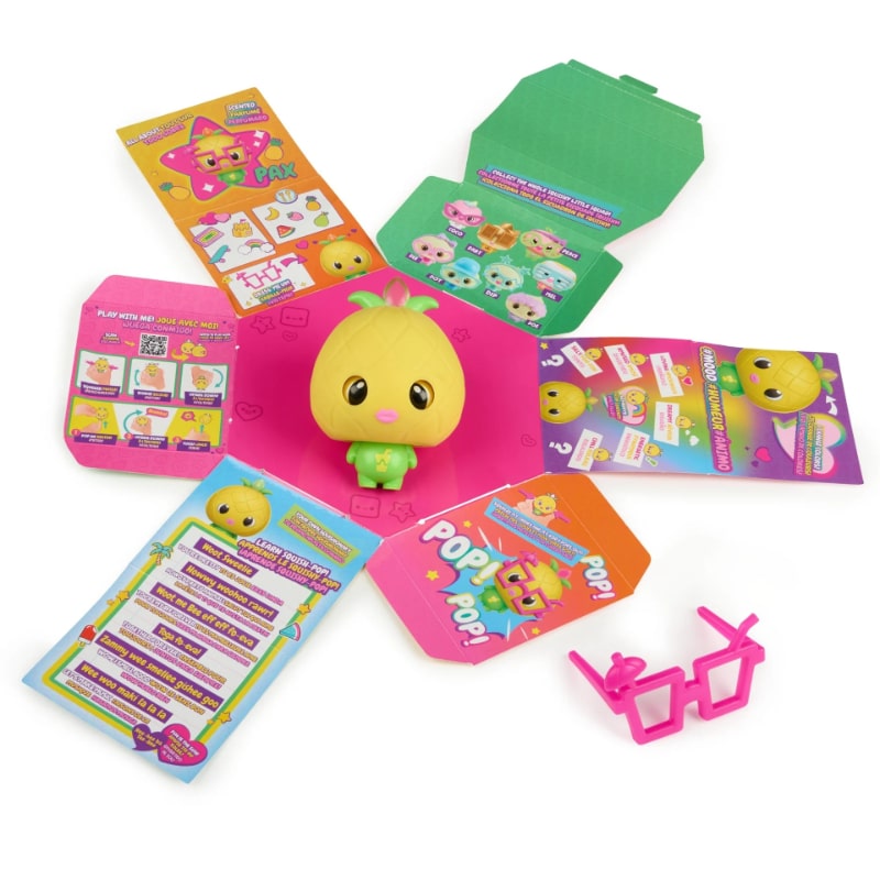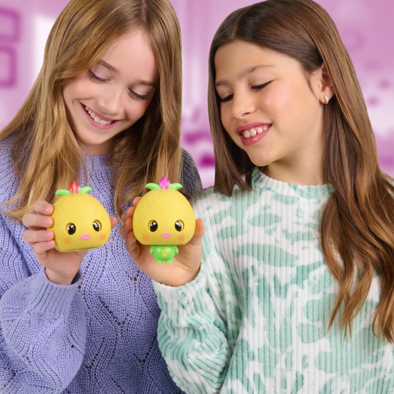 Kuka voisi vastustaa tätä kämmenelle mahtuvaa My Squishy Little ananas-hahmoa? Hahmosta lähtee yli 50 toimintoa. Ääni, valo ja tunne toiminnot paljastavat hahmon tunnetilan. Kun painat hahmoa poskista, sen vartalo tulee esiin.