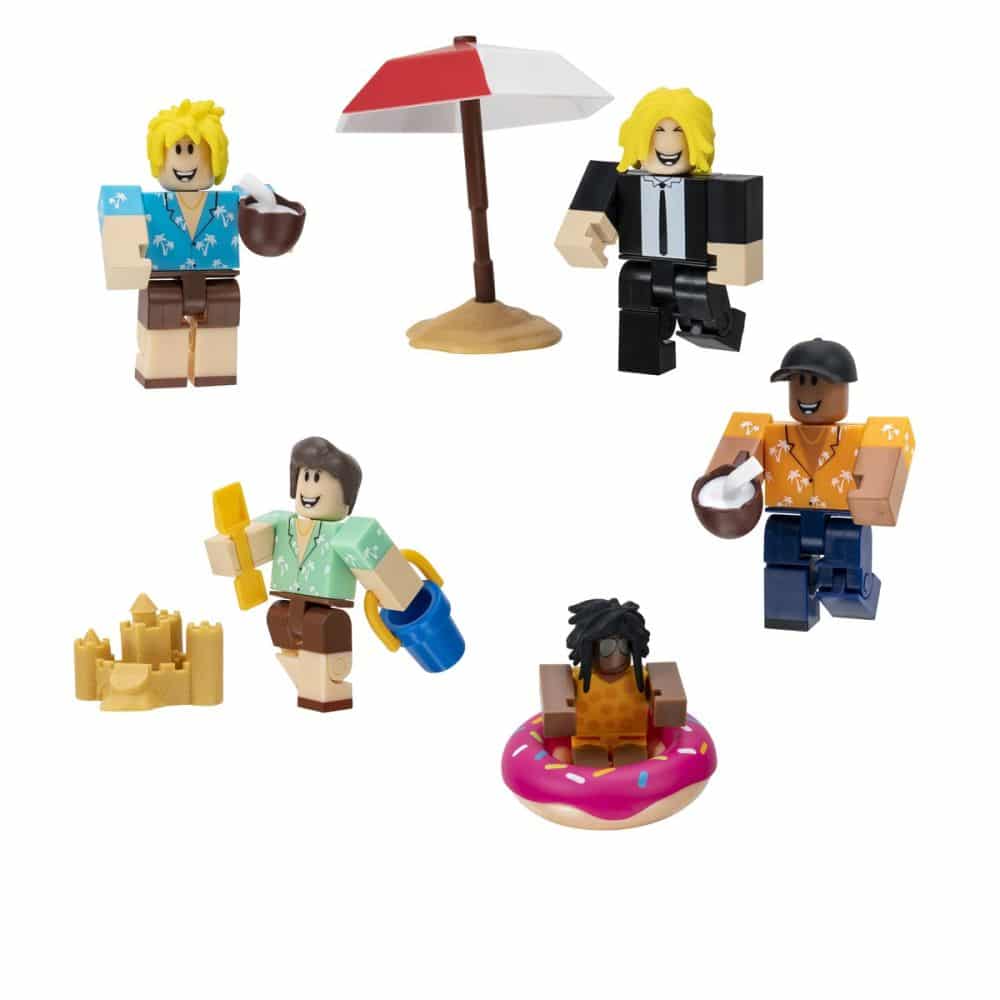 - Mukana tulee 13 osaa: viisi hahmoa, uimapatja, aurinkovarjo, hiekkalinna, -ämpäri ja -lapio sekä kookosjuomat.