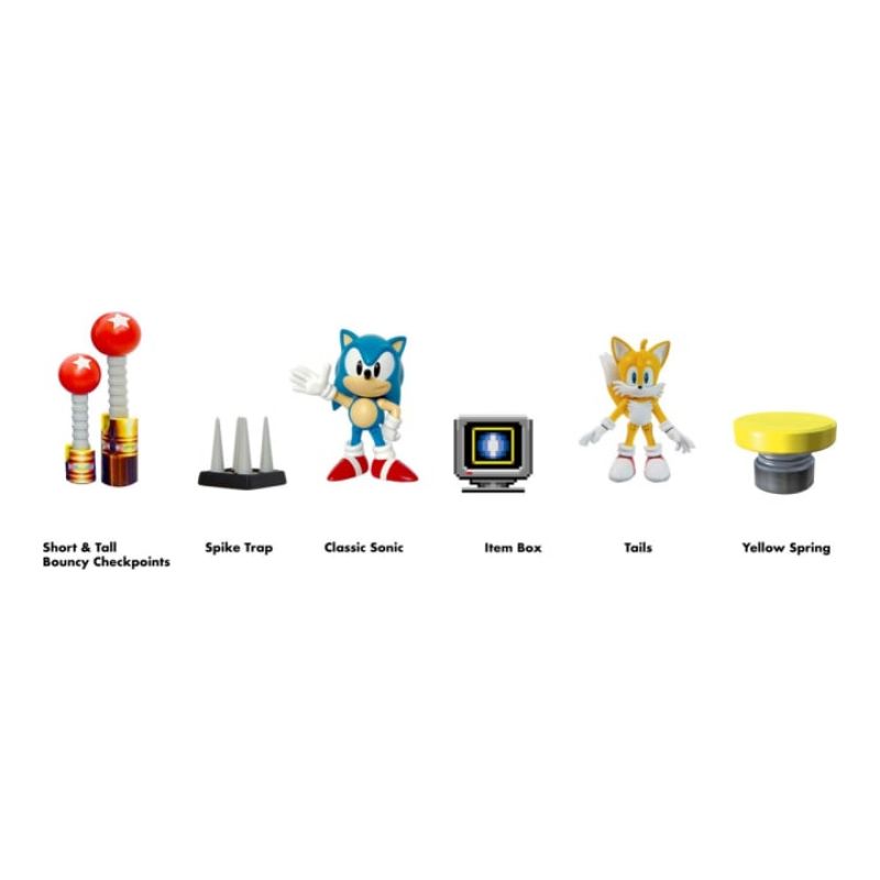 Hauskassa Sonic leikkisetissä on kaksi hahmoa: Sonic ja Tails sekä lisäosia, kuten tv ja esteitä. Hahmojen korkeus on noin 6 cm. Sonicin 30-vuotis juhlapakkaus.