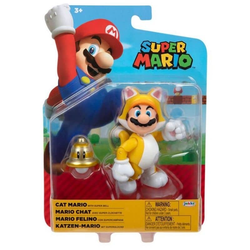 Super Mario keräilyfiguuri liikuteltavilla raajoilla. Nintendo lisensoitussa figuurissa on yhteensä viisi liikuteltavaa niveltä, joiden avulla hahmo saadaan peleistä tuttuihin poseerausasentoihin. Hahmon mukana tulee super Bell.