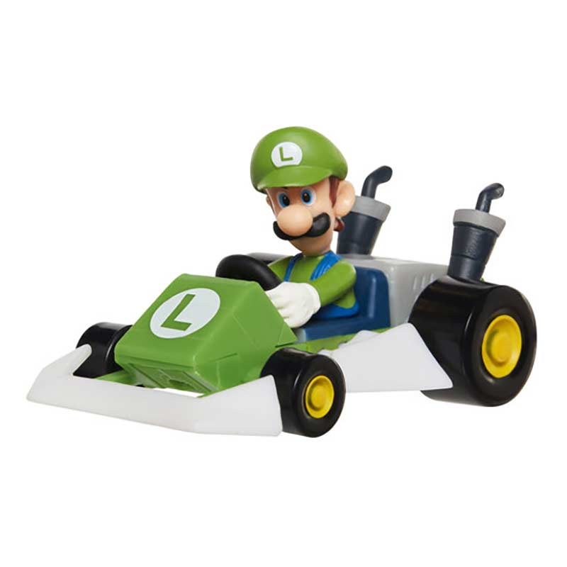 Luigi Mario-hahmo ajaa ralliautoa. Hahmo on kiinni ajoneuvossa.