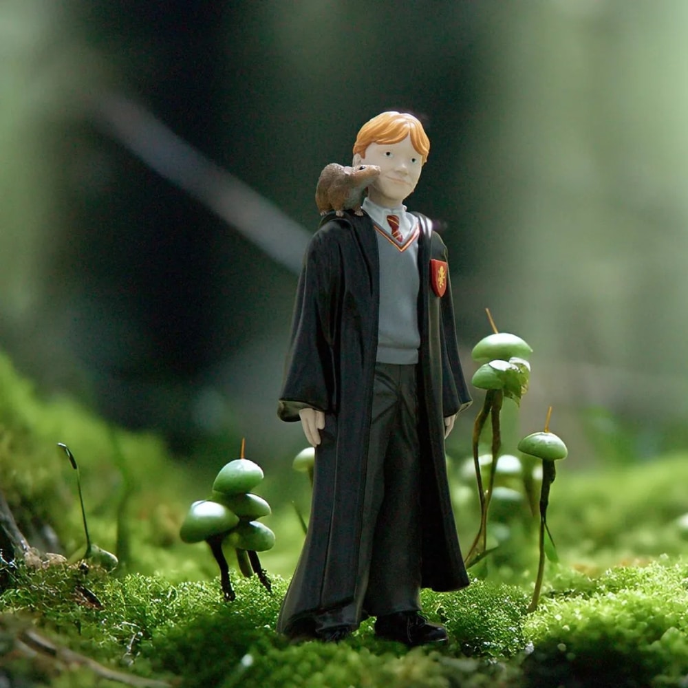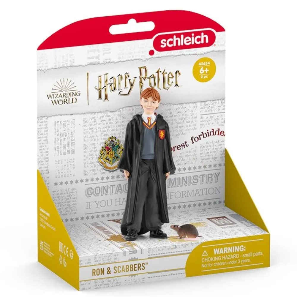 Schleich Ron & Scabbers 42634 – Punatukkainen ja huumorintajuinen Ron Weasley™ on Harryn ensimmäinen ystävä Tylypahkassa. Koko kouluajan Ron pysyy Harryn tärkeimpänä liittolaisena ja apuna pyrkimyksessä tuhota lordi Voldemort. Kutka-rottaa puolestaan pidetään usein melko hyödyttömänä.