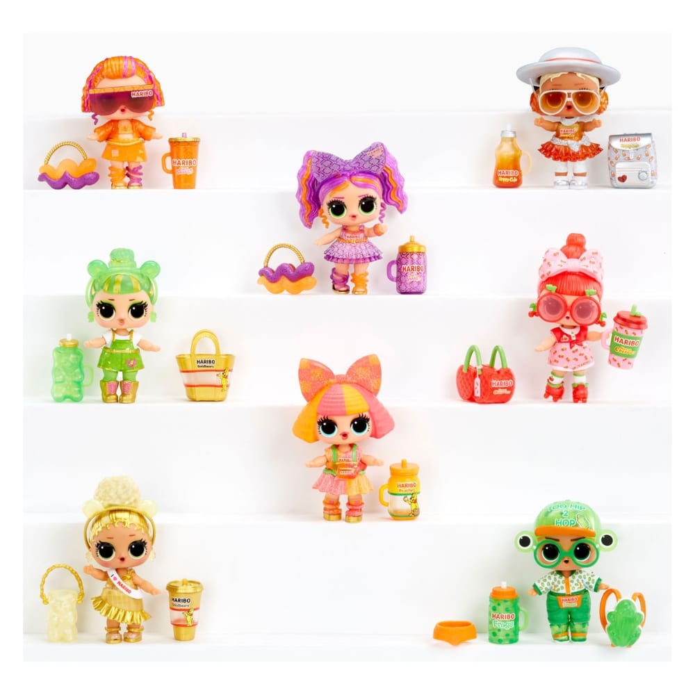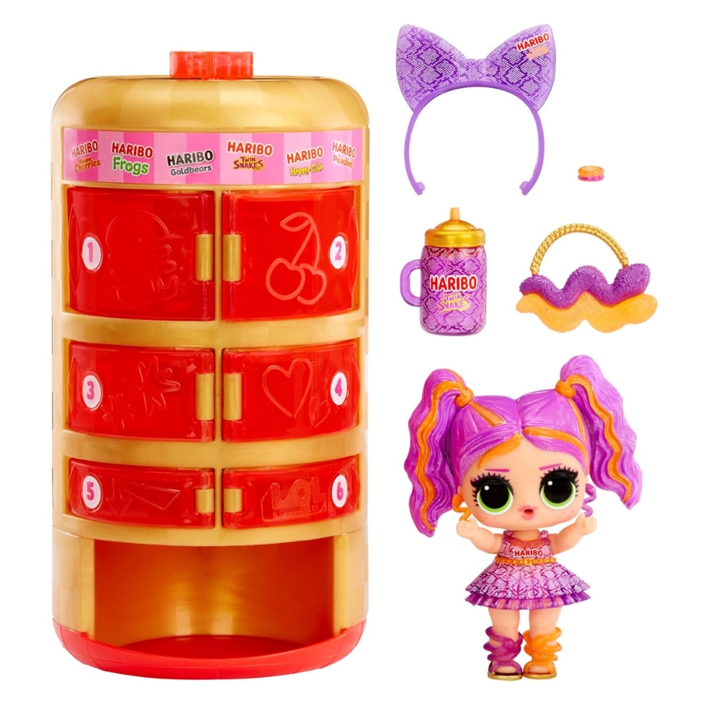 Haribon yllätysnukke on pakattu karkkiautomaatin näköiseen sylinteriin. Nukkeja on yhdeksän erilaista ja jokaisessa pakkauksessa on nuken lisäksi seitsemän yllätystä. Yllätykset löydät avaamalla karkkiautomaatin luukkuja. Nukkejen pituus on noin 8cm.