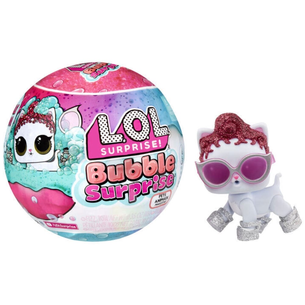 L.O.L. Surprise Bubble pallo Pets Animaux – Esittelyssä LOL Surprise Bubble Surprise Lemmikit! Nämä karvaiset ystävät ovat valmiita uimaan sinun luomassasi kimaltelevien kuplien meressä! Kaada vettä LOL Surprise -pallosi yläosaan, istu sitten alas ja katso, kun kimalteleva kuplareaktio muuttaa väriä ja paljastaa oman keräilykelpoisen lemmikin ja yllätyksiä!