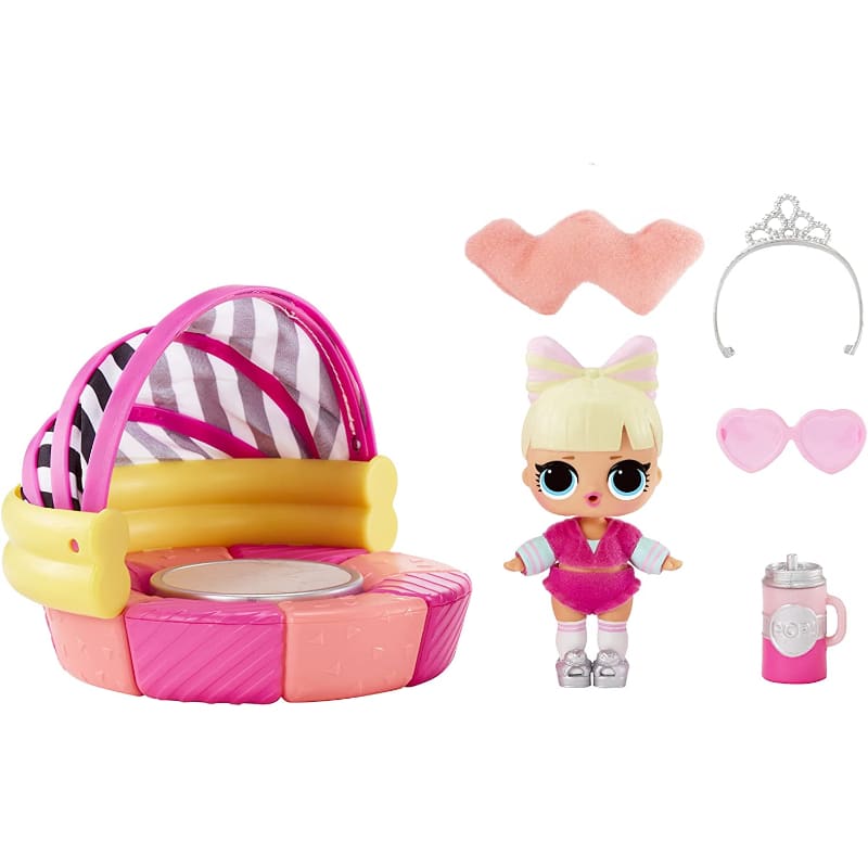 Upean pyöreän mallisen L.O.L. Surprise-leposohvan päälle saa katoksen ja sen keskellä on pöytä. L.O.L.-nukella on päällään tyylikäs asu kokonaisuus, päässään sydän lasit ja kädessään virvoitusjuomaa. Laita nukke loikoilemaan sohvaan ja anna sille juotavaa. Hieno lahjaidea kaikille L.O.L. Surprise-faneille!