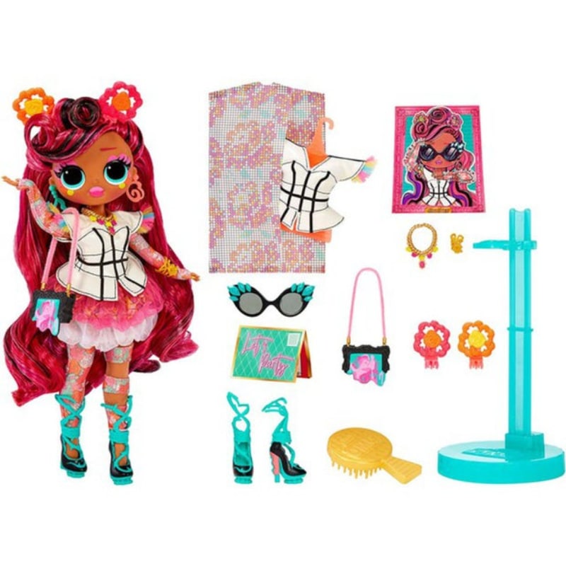 Pakkaus sisältää: LOL Surprise OMG Queens-muotinuken, asusteita, korvakorut, kaulakorun, rannekorun, kukkaron, kengät, hiusklipsit, aurinkolasit, kutsun, hiusharjan, vaatekassin, ripustimen ja nukketelineen.