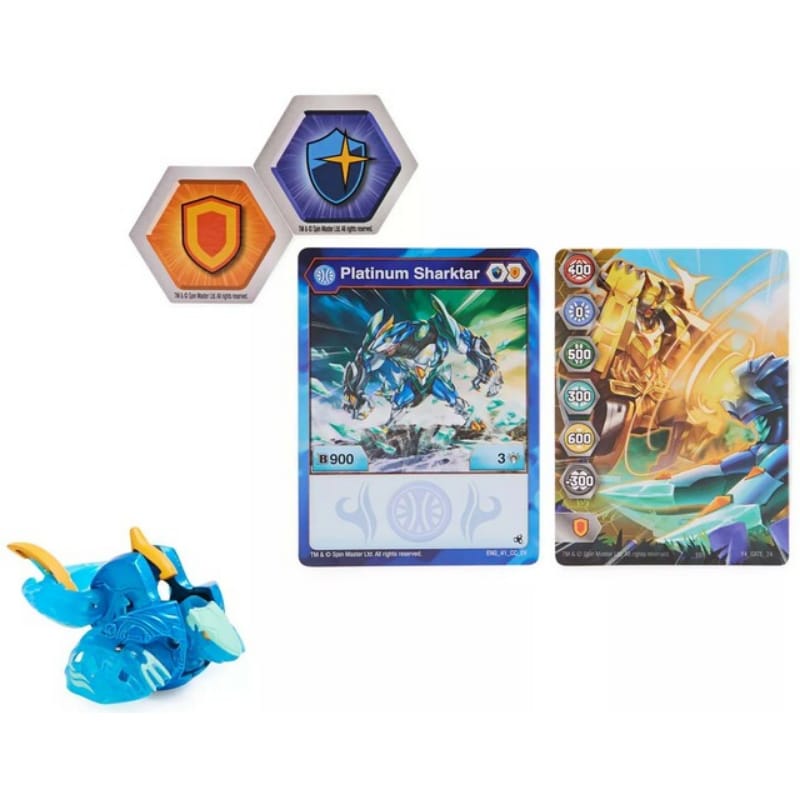- Pakkaus sisältää: yhden osittain metallisen Bakuganin, kaksi BakuCorea, porttikortin ja persoonallisuuskortin.