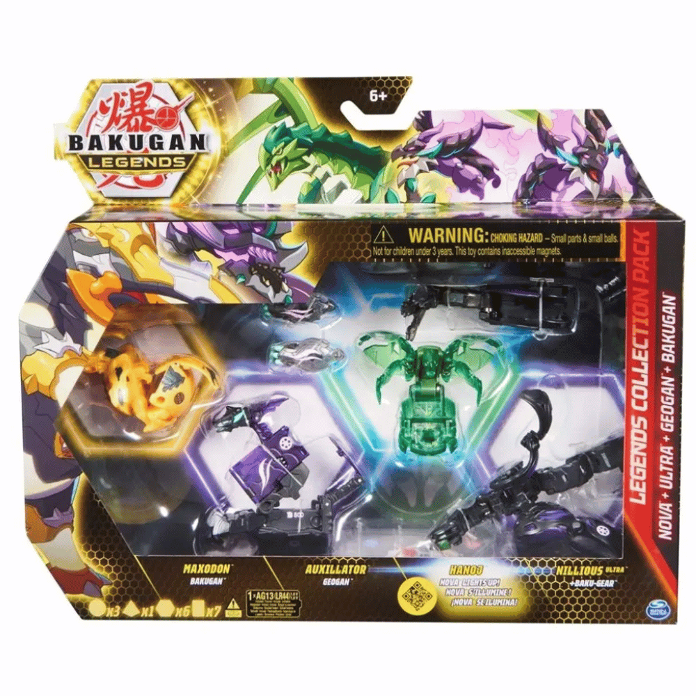 Bakugan legends collection. Bakugan Legends keräilypaketissa on kaikki mitä tarvitset taisteluun. Se sisältää 4 Bakugan- keräilyhahmoa ja kykykorttia, Porttikortteja ja muuta. Bakugan lelukokoelmastasi tuli juuri voimakkaampi kuin koskaan valaistuvien Nova Bakuganien ansiosta. Näet valon, kun vierität ne BakuCorejen (sisältää 6) yli. Näe kuinka Bakuganisi ponnahtaa auki ja muuntautuu hurjaksi toimintahahmo olennoksi. Pelaa Geoganisi kesken taistelun ja käy yllätyshyökkäykseen voittaaksesi vastustajasi.