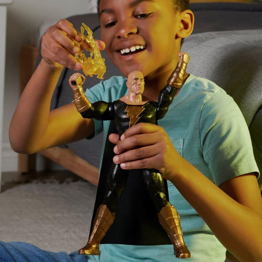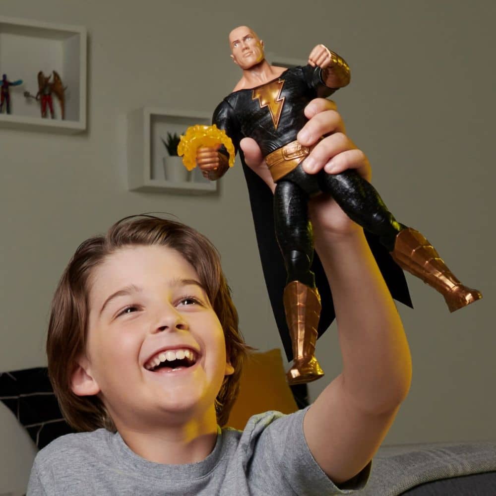 Tuo Black Adamin mahtavat voimat kotiisi Black Adam Power Punch toimintahahmolla. Noin 30 cm korkealla hahmolla on 11 liikkuvaa nivelpistettä, joten voit laittaa sen moneen eri taisteluasentoon. Muovisella hahmolla on kankainen viitta selässään. Black Adam figuurissa on autenttista elokuva muotoilua ja yksityiskohtia. Mukana tulee kaksi lisävarustetta: räjähtävä lyönti ja salama. Kiinnitä ne Black Adamin käteen ja paina hänen rintaansa aktivoidaksesi lauseet ja äänet. Black Adam-hahmo tuhoaa pahuuden ja tuo järjestystä yhteiskuntaan. Lapset nauttivat saadessaan käyttää mielikuvitustaan luodakseen omia supersankari seikkailujaan.