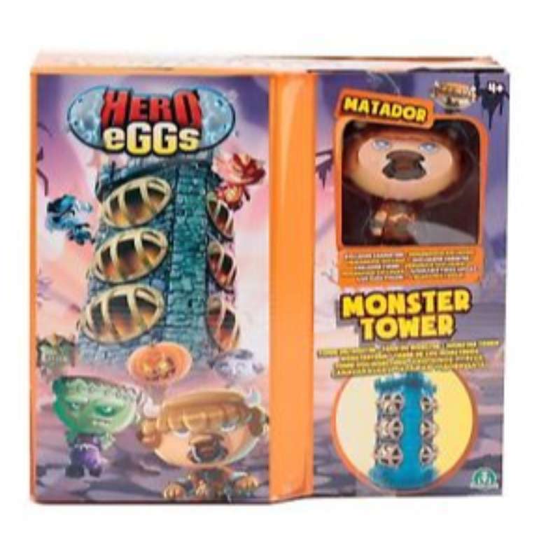 Pakkauksessa Matador hahmo ja torni johon voit kerätä Hero Eggs hahmosi.