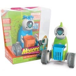 Pidä hauskaa Hexbugin kanssa! MoBots tallentaa puhetta, toistaa sen ja voi muuttaa äänesi korkeuden matalaksi tai korkeaksi, hitaasta nopeaksi tai jopa saada sinut kuulostamaan robotilta. Suuntaa Fetch kaukosäätimellä liikkumaan mihin tahansa suuntaan ja laita se kantamaan pieniä tavaroita. Robotti liikkuu erilaisilla alustoilla, kuten matoilla ja puulattialla. Robotilla on yksi silmä ja luonnetta, jonka se ilmaisee hauskoilla robotin äänillä ja liikkeillä. Laita Fetch muiden MoBotien rinnalla ja kuuntele, kun he puhuvat keskenään omalla robotinkielellään. Jokaisella robotilla on erilainen irokeesi-kampaus. Lajitelmassa on kolme eriväristä robottia.