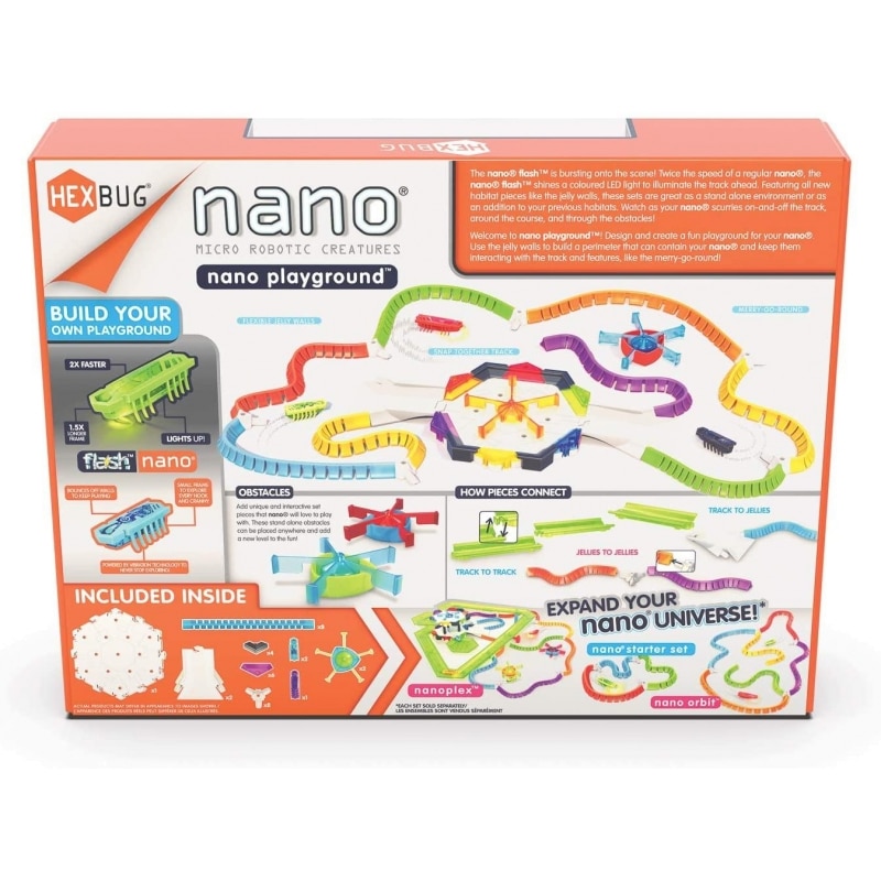 Tutustu tärinätekniikan voimaan! Rakenna oma rata joustavilla seinillä ja liittimillä nanohyönteisille. Pakkaus sisältää yli 30 osaa, kahdeksan seinää ja liittimiä, Flash Nano ötökän, joka on kaksi kertaa nopeampi ja jossa on led-valo, sekä kaksi pienempää Nano ötökkää. Nämä minirobottilelut vaihtavat satunnaisesti suuntaa ja pomppaavat pois esineistä. Voit leikkiä tällä setillä tuntikausia itsenäisesti!