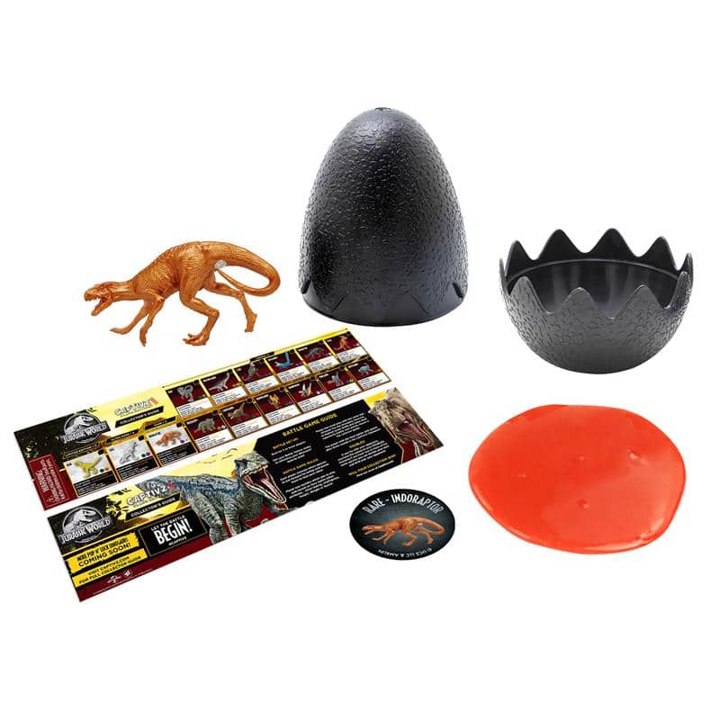Valmistaudu dinosaurustaisteluun! Jurassic Worldin dinosauruksen muna, jossa on limaa, yksi yllätys dinosaurus, taistelukortti ja ohjeet. Kerää kaikki dinosaurukset! Dinosaurus ovat kasattava.