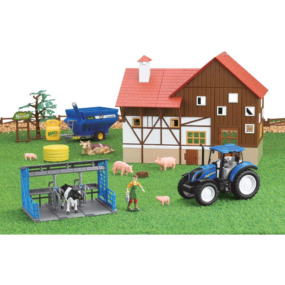 Pikkufarmareiden leikkisetti sisältää New Holland -traktorin ja peräkärryn, maatilarakennuksen, lypsyaseman, eläimiä ja muita maatilan tarvikkeita. Anna mielikuvituksellisen leikin viedä mennessään!