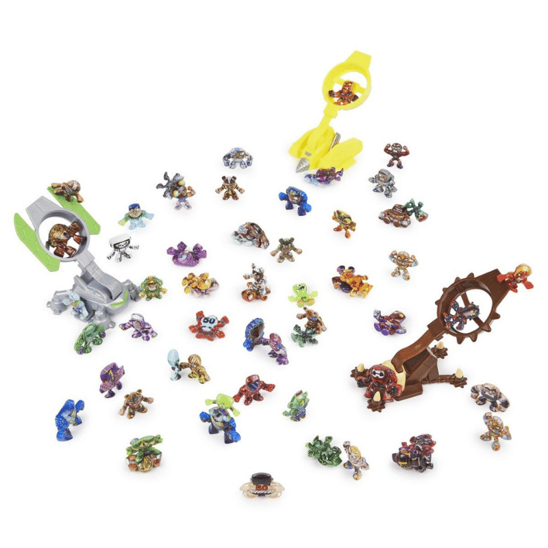 - Kolme erilaista aloituspakkausta, jokaisessa oma hahmo ja katapultti, muut pakkauksen hahmot ovat yllätyksiä.