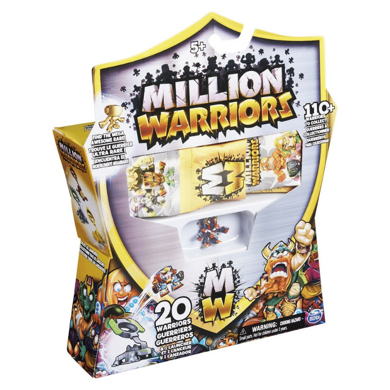 Million Warriors aloittelijoiden pakkaus sisältää kaiken mitä tarvitset rakentaaksesi ja laajentaaksesi Million Warriors kokoelmaasi. Ihaile uskomattomia yksityiskohtia ja värejä jokaisessa uniikissa soturissa, kaikilla on oma harvinaisuutensa ja klaaninsa. Käytä katapulttia laukaistaksesi soturisi eteenpäin. Kerää kaikki kolme katapulttia, yksi jokaisesta klaanista. Yli 110 soturia kerättävänä ja taisteltavana. Jokainen paketti on yllätys. Taistele ystäviesi kanssa ja tuhoa vihollisesi pala palalta. Viimeinen pystyssä oleva soturi voittaa. Onko sinusta Million Warriors mestariksi? Aloita rakentamaan omaa Million Warriors tiimiäsi tänään!