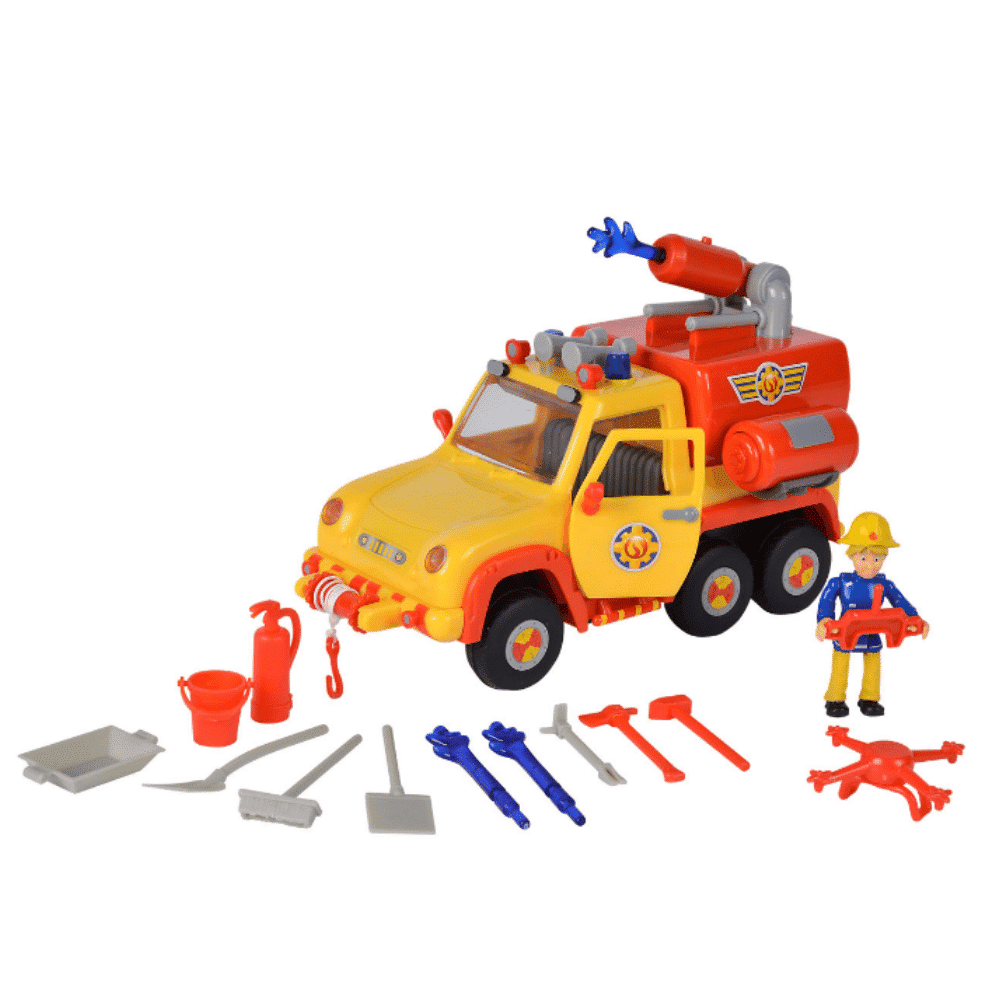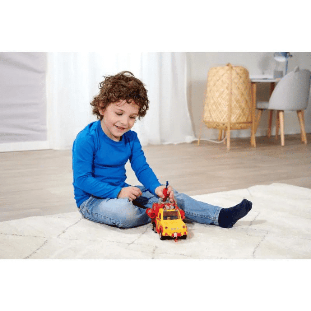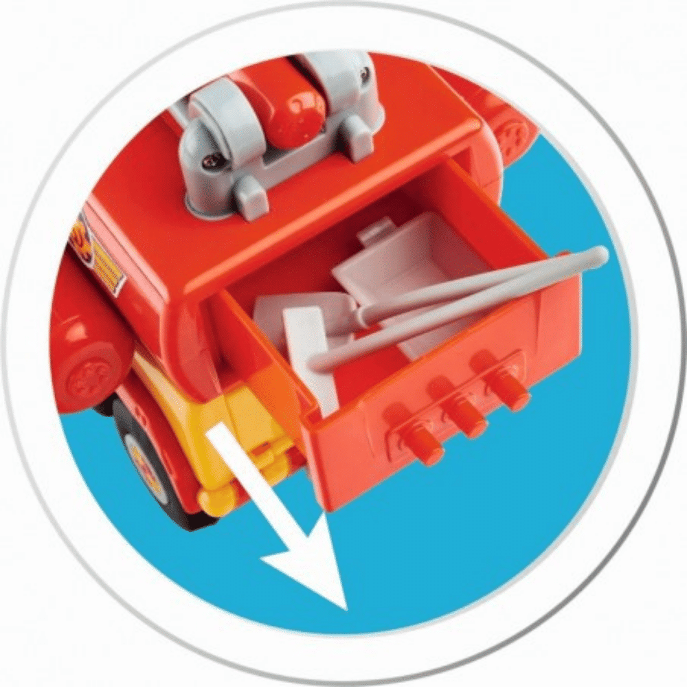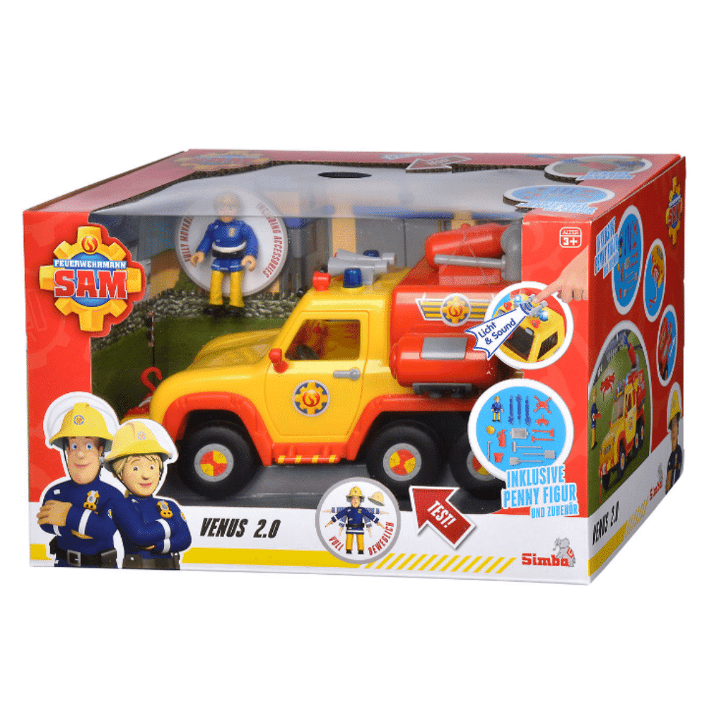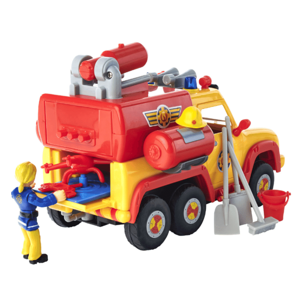 Ohjaamossa oleva painike aktivoi alkuperäisen äänen ja sininen valo syttyy. Paloauton katolla on vesitykki, jolla lapset voivat ampua vettä. Sivussa olevat vesisäiliöt voidaan vetää ulos ja tavaratila ja ovet avata.