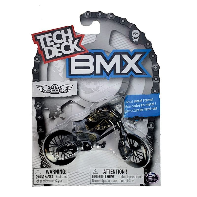 Tyylikäs musta Bmx Tech Deck-sormipyörä hauskoihin sorminäppäryyttä vaativiin leikkeihin ja vaativampaan temppuiluun. Polkupyörässä on metallirunko. Kerää kaikki!