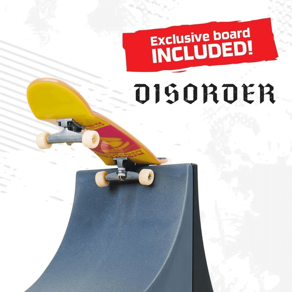 Nouse ilmaan Tech Deckillä, aidoilla sormiskeiteillä, joissa on aitoa grafiikkaa aidoilta skeittiyhtiöiltä! Power Flippin X-Connect Park Creator – ramppisetissä on kaikki mitä tarvitset rakentaaksesi upean kustomoidun puiston, jossa voit hioa sormiskeittitaitojasi täydellisyyteen. Voit rakentaa erilaisia yhdistelmiä, rampeilla, paneeleilla ja rakennusteline palkeilla, jotta voit oppia ja kehittää temppujasi. Sukella ramppiin, hyppää rakennustelineillä ja järjestele ja kustomoi paikka aivan kuten haluat. Voit skeitata puistossasi mukana tulevalla eksklusiivisella Disorder Skateboardsin sormiskeitillä ja lisätä sen miniskeittilauta kokoelmaasi. Voit yhdistää puistoon muita X- Connect yhteen sopivia ramppeja, kuten Pyramid Point ja Big Vert Wall ramppisetit (kaikki myydään erikseen) ja rakentaa äärimmäisen sormiskeittipuiston, jossa voit skeitata. Käytä Power Flippin X- Connect Park Creatoria Tech Deck sormiskeittikokoelmasi (kaikki myydään erikseen) kanssa. Valikoimaan kuuluu paljon skeittejä, lelufiguureita & leikkisettejä kerättäväksi! Skeittaa, hyppää ja tee temppuja Tech Deckin sormiskeiteillä oikeilta skeittifirmoilta! Tech Deck miniskeitit sormille ja ramppisetit ovat täydellisiä lahjoja 6–8- vuotiaille tytöille, jotka pitävät pienistä ja siisteistä leluista tai vaihtoehtoina leluautoille 6–8- vuotiaille pojille. Jos haluat oikeita skeittigrafiikoita oikeilta skeittifirmoilta, sinun on hankittava Tech Deckejä – aloita pienestä tai isosta ja kerää ne kaikki. 6+.