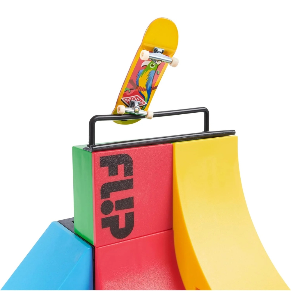 Haukkaa happea Tech Deckillä, aidoilla sormiskeiteillä, jotka on koristeltu oikeiden skeittiyhtiöiden grafiikoilla! X-Connect Park Creator -sormiskeittiramppisarja sisältää kaiken, mitä tarvitset mahtavan mukautetun skeittipuiston rakentamiseen.