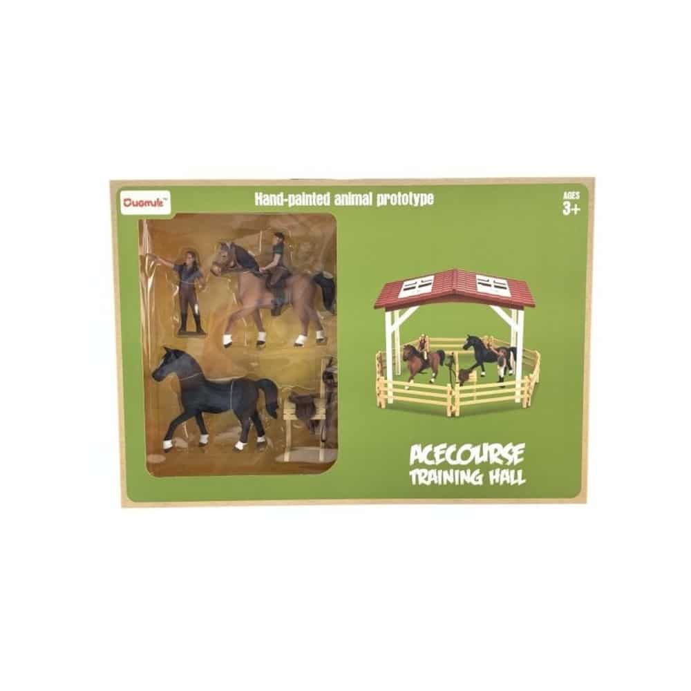 Hevoset ovat ystävällisiä ja älykkäitä eläimiä! Voit mielikuvituksesi avulla ratsastaa näillä hevosilla melkeimpä kuin itse! Pakkaus sisältää kaksi hevosta ratsastajineen. Mukana tietenkin myös satulat ja suitset.