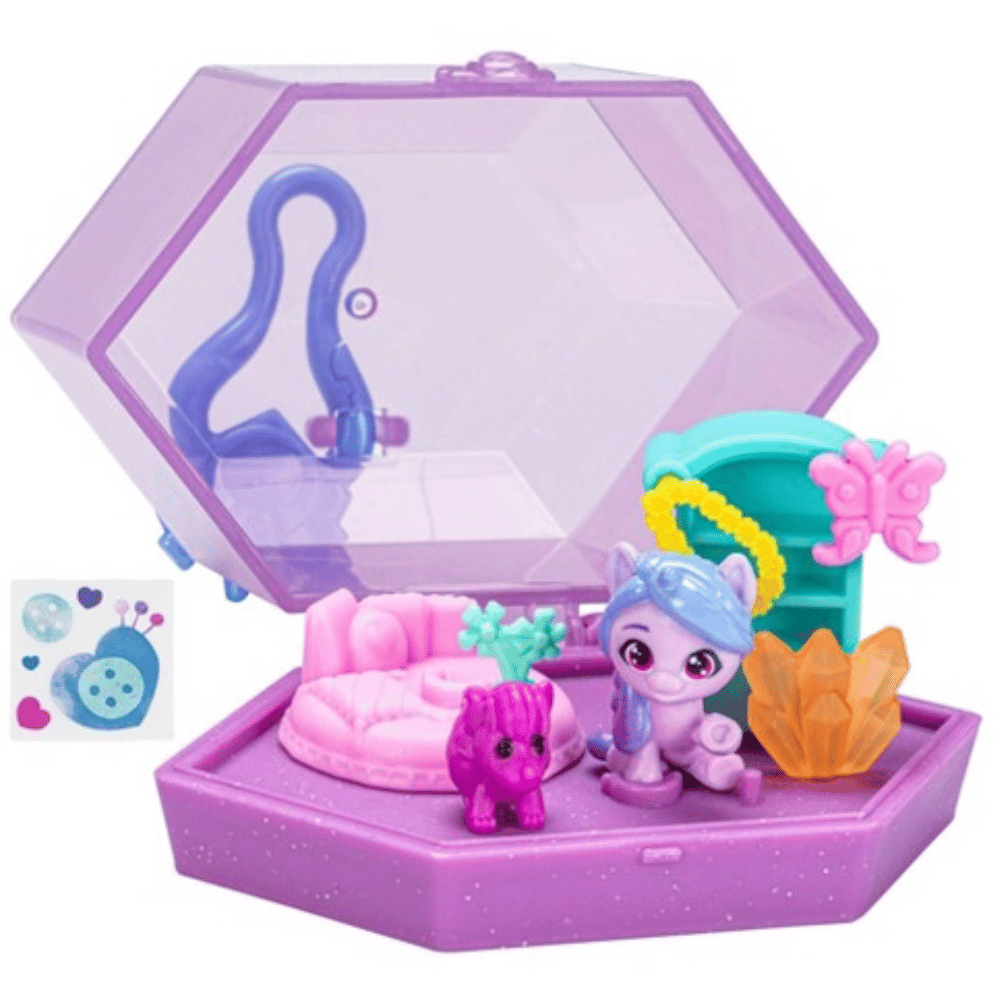 My Little Pony mini avainketju Izzy Moonbow. Tervetuloa maagiseen minimaailmaan! Rakenna maailma maagisista miniystävistä ympäri Equestriaa. Supersuloiset miniponit ovat 2,5 cm:n kokoisia ja ne mahtuvat ihastuttavaan kristallinmuotoiseen avaimenperään. Etsi ja kerää muita minileikkisarjoja ja rakenna niistä Equestrian maailma minikoossa. Pakkaus sisältää minikokoisen ponihahmon, kristallinmuotoisen avaimenperäkotelon, tarra-arkin ja lisävarusteita. Ikäsuositus: 5+ vuotta.