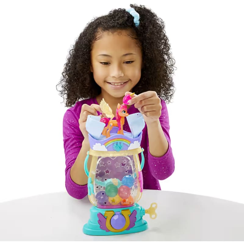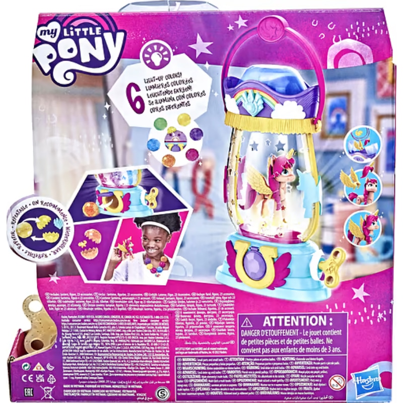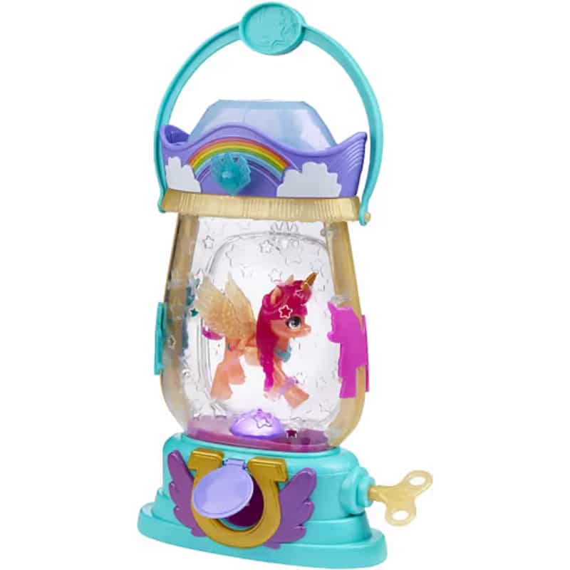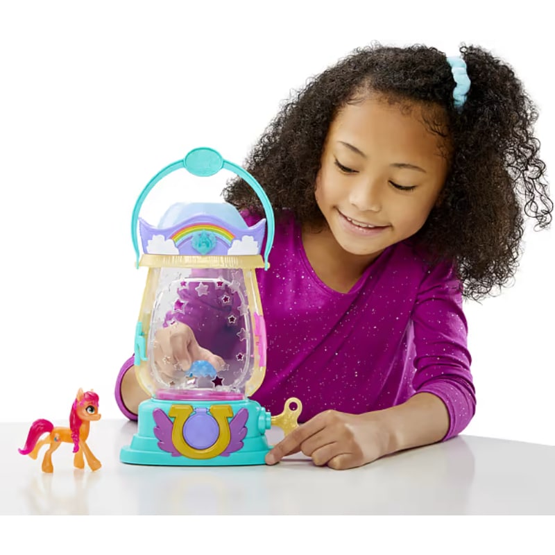 My Little Pony Sparkle Reveal Lantern -leikkisetti sisältää elokuvasta tutun lyhdyn, joka paljastaa kimaltelevan yllätyksen! Käännä lyhdyn avainta nähdäksesi sen syttyvän ja annostelevan värikkäitä ”kristalleja”. Jokaisen lyhdyn mukana tulee jännittäviä yllätystarvikkeita ja asusteita Sunny Starscoutille. Aseta kristallit lyhdyn valon päälle muuttaaksesi sen väriä – 6 eri väriä valittavana! Voit muuttaa Sunny Starscout -ponin tyyliä yksisarvisen sarvella, pegasuksen siivillä ja koristeellisilla tarroilla.