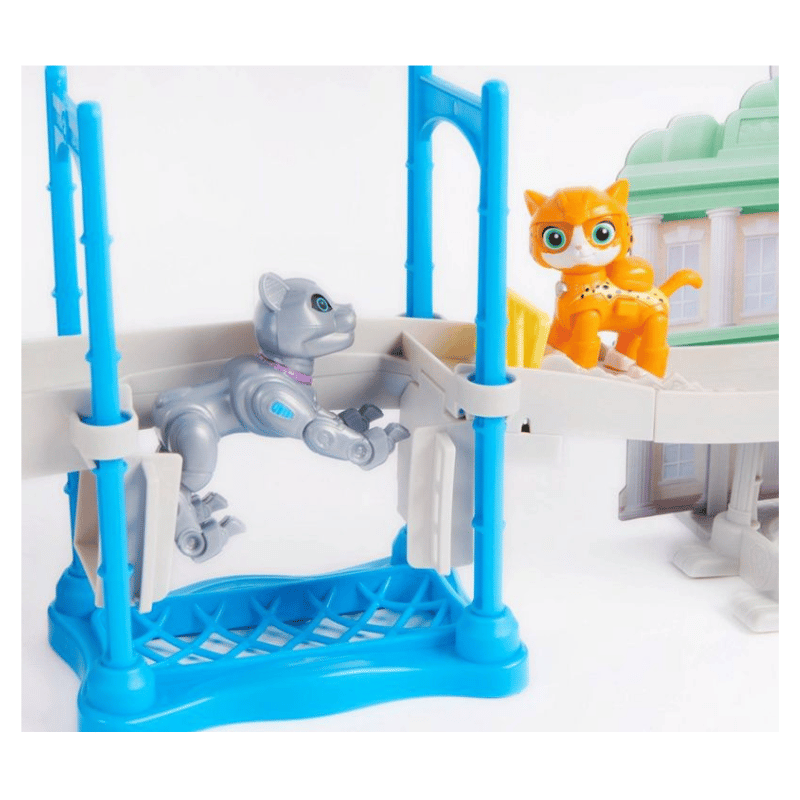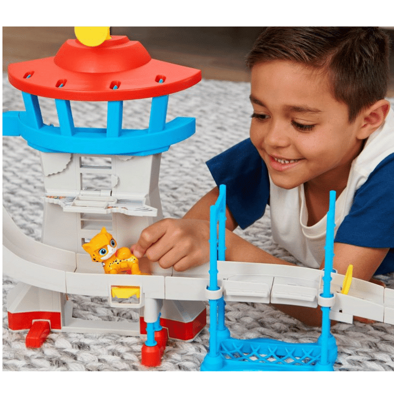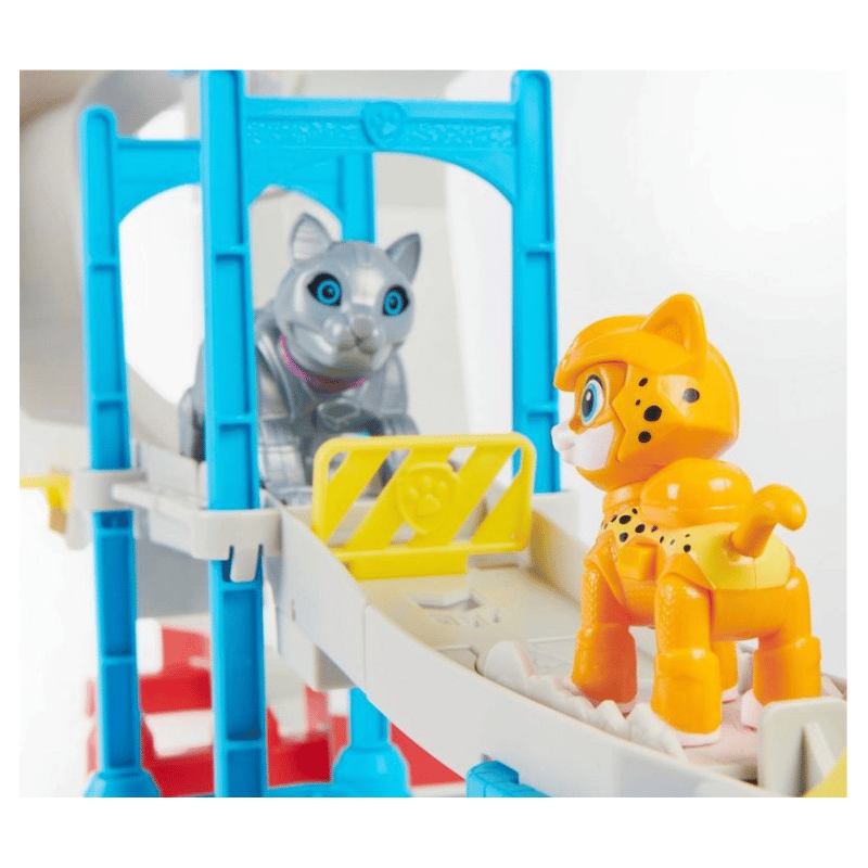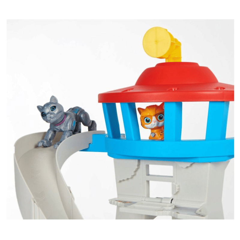 Seikkailunäkötornin kimppuun on hyökännyt robottitiikeri Meow-Meow, joka rakastaa metallin syömistä. Kissapakkauksen nopein villikissa valmistautuu pelastamaan päivän. Kun Miau-Miau laskeutuu alas rampilta, käytä laukaisuramppia laukaistaksesi villikissan rullalaudalle, jotta ansaluukku aukeaa ja Miau-Miau jää kiinni alla olevaan verkkoon! Kun painat villikissa-hahmon kyljessä olevaa painiketta, sen jalat liikkuvat. Pakkauksen mukana tulee Ryhmä Hau vahtitorni, robotti- ja villikissa. Vahtitornissa on useita eri toimintoja. Tällä leikkisetillä lapsilla riittää hauskaa tuntikausiksi! Mahtava lahjaidea kaikille Paw Patrol faneille!