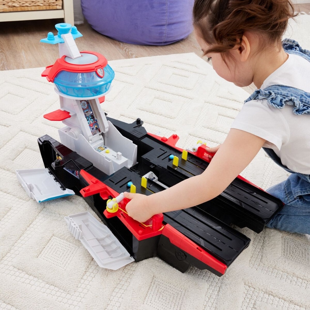 Esittelyssä Ryhmä Hau Lentotukialus -päämaja! Tämä ainutlaatuinen muuntautuva lentotukialuslelu on täydellinen jännittäviin pelastustehtäviin kuvitelluilla merillä, ja sen mukana tulee aito Ryhmä Hau: Mahtielokuva Vainu -toimintahahmo ja Vainun aito poliisiauto pelastusajoneuvo!