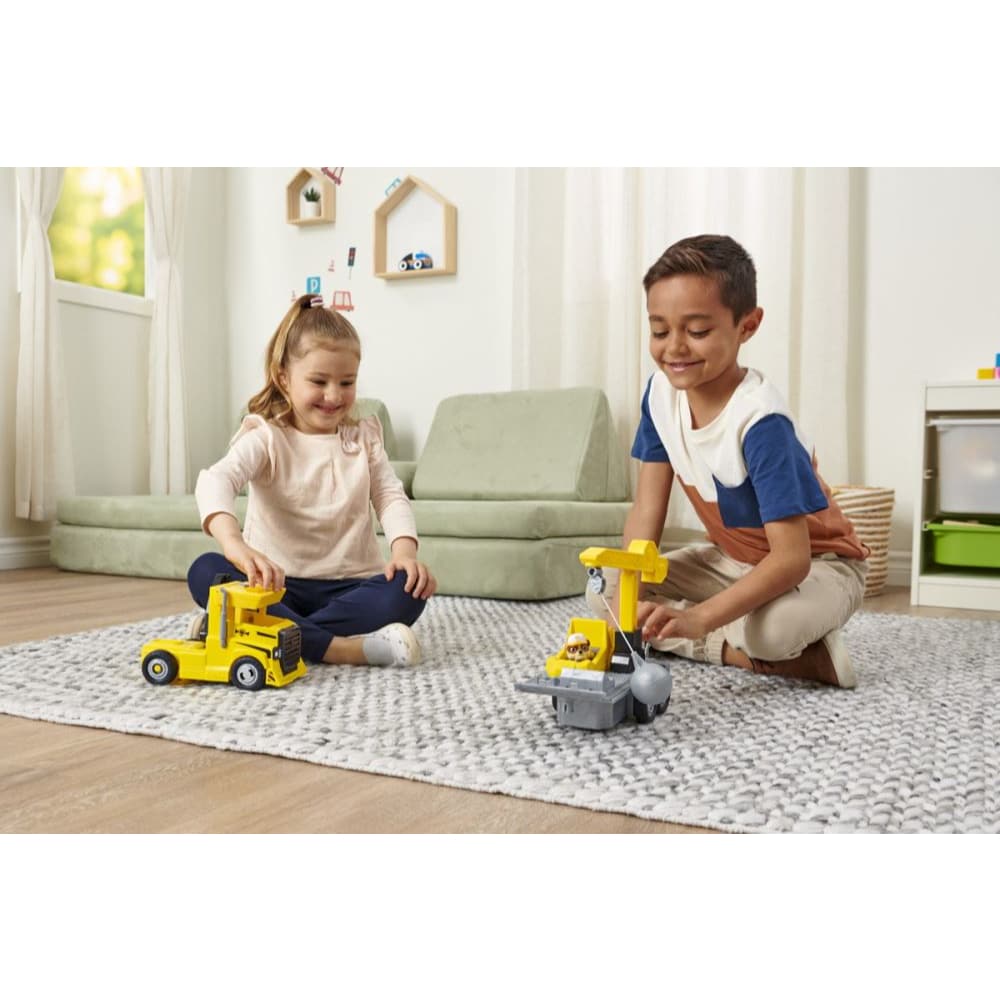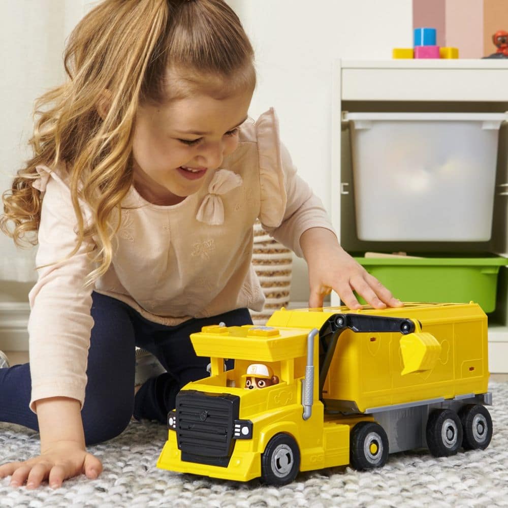Kuvittele kuinka avaat kuorma-auton ohjaamon katon ja asetat Rollen kuskin paikalle ja painat Ryhmä Hau merkkiä katolla aktivoidaksesi valot ja äänet. Sitten voit lähteä matkaan ja saapua paikalle tällä mega pelastusajoneuvolla ja irrottaa perävaunun, jotta voit ottaa kaivinkonelelun alueelle. Voit muuntaa perävaunun komentokeskukseksi paljastaaksesi rakennuslelut, jotta Rolle voi käyttää murkauspalloaan poistaakseen esteitä. Sen jälkeen hän voi vaihtaa murskauspallon nosturin koukkuun ja leikkiä nostavansa romut materiaalinsäilytysyksikköön. Kun olet pelastanut päivän Seikkailulahdella, muunna perävaunu takaisin ja kiinnitä se autoleluun ja kiihdytä sitten kohti seuraavaa tehtävääsi.