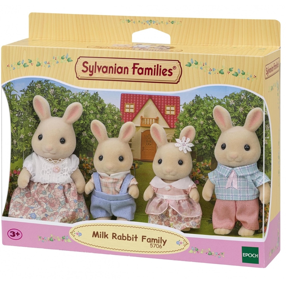 Sylvanian Families maitokaniperhe, johon kuuluu äiti, isä, tyttö ja poika. Maitokaniperhe odottaa seikkailuja kanssasi.