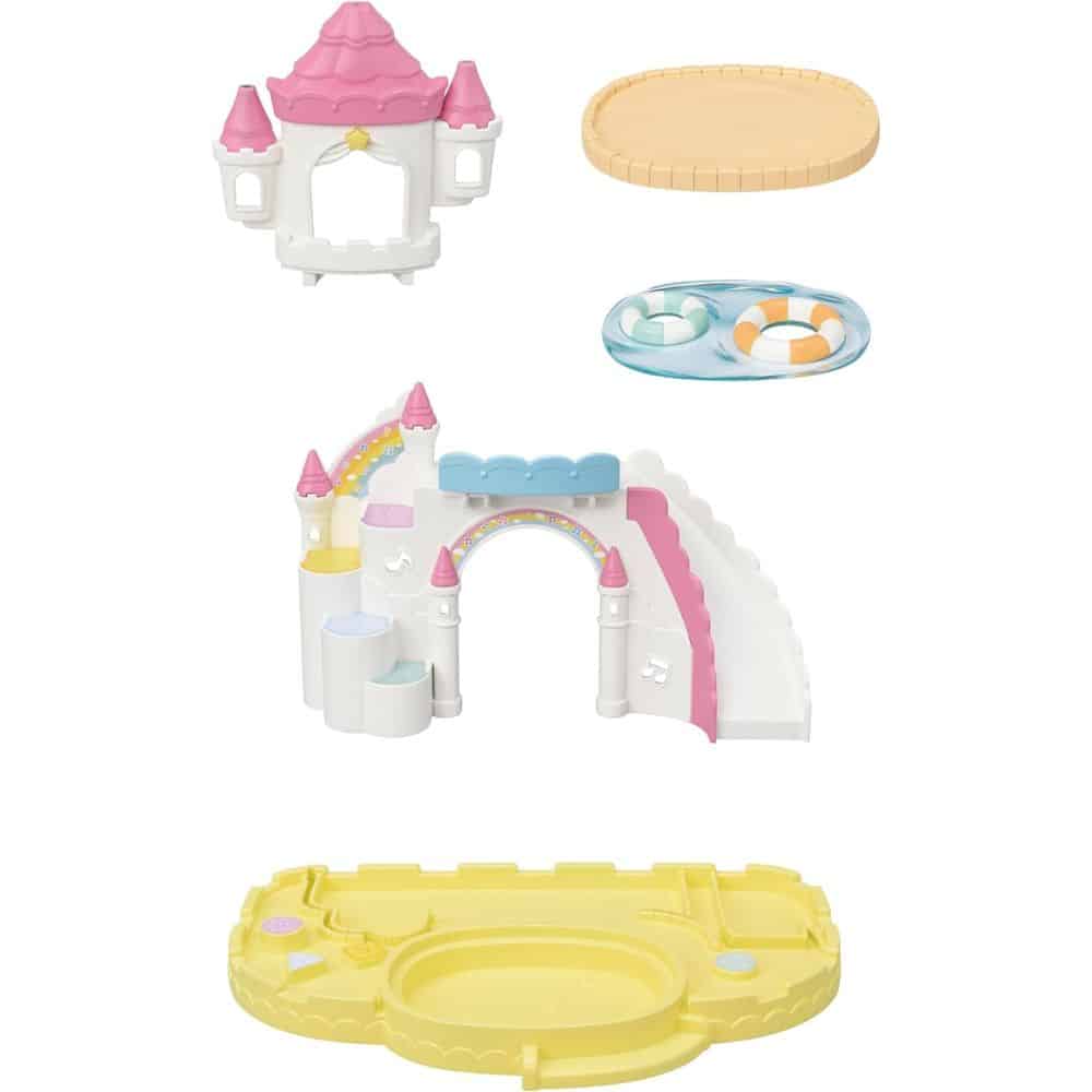 Sylvanian Families päiväkodin hiekkalaatikko ja allas, jotka näyttävät linnalta.