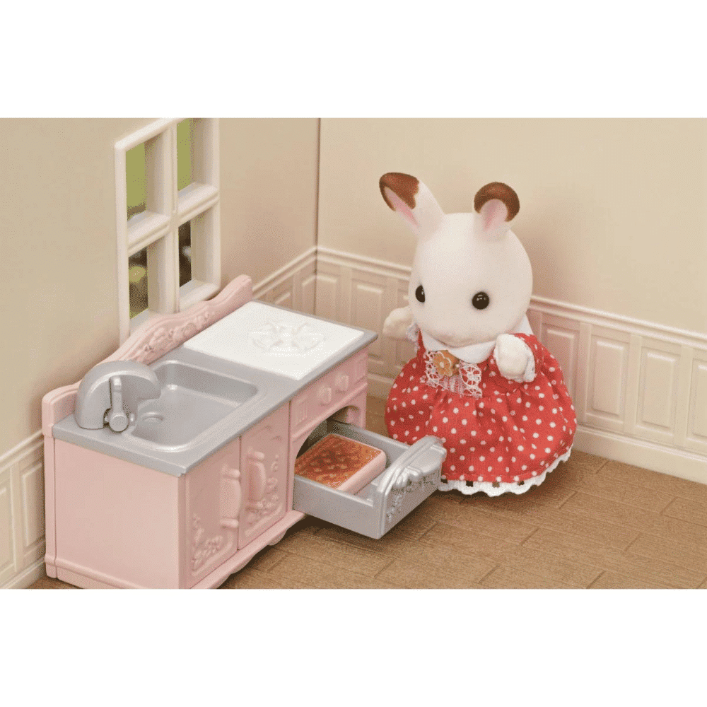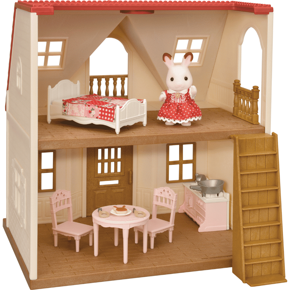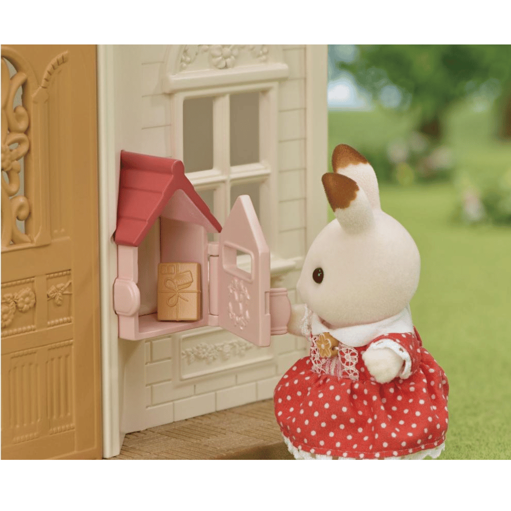 Tämä ihastuttava pupu asuu kauniissa kaksikerroksisessa talossa, jossa on upea punainen katto. Hän rakastaa ruoanlaittoa ja kutsuu usein ystävänsä päivälliselle. Hän toivottaa heidät aina tervetulleeksi parvekkeelta! Viihtyisä mökki voidaan yhdistää muihin Sylvanian Families -rakennuksiin.