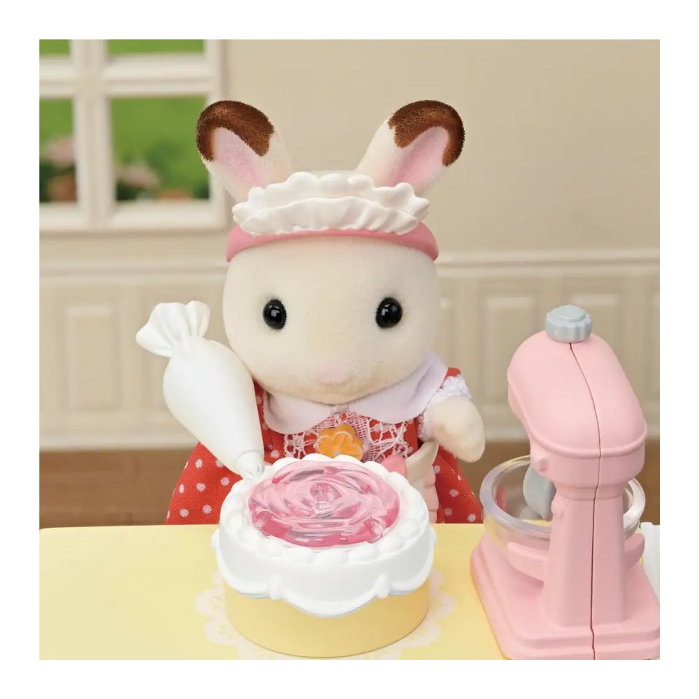 Tässä kakkukauppa setissä on uuni, jossa voi leipoa kakkupohjia. Lisäksi on erilaisia kakun koristeita. Kun kakkupohjat ovat valmiita, koristele ne kermalla ja täytteillä ja tee erilaisia kakkuja. Koristeita on yli 100 erilaista yhdistelmää! Järjestä kakut vitriiniin ja esittelypöydälle. Kakut voidaan poimia pihdeillä ja laittaa laatikkoon, jotta asiakkaat voivat viedä ne kotiin.