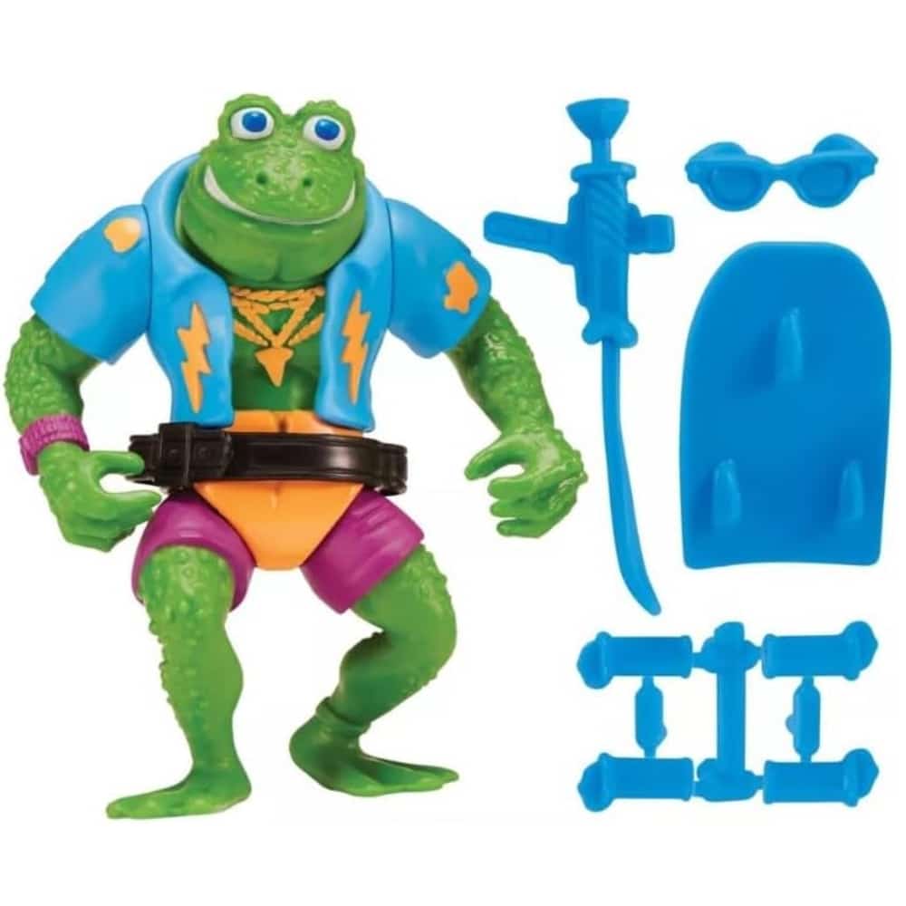 Turtles Genghis Frog -hahmo on noin 10 cm korkea. Hahmolla on liikkuvat raajat ja pää, joten voit laittaa sitä erilaisiin asentoihin. Hahmolla on autenttiset yksityiskohdat. Mukana tulee hahmo ja sen tarvikkeet.