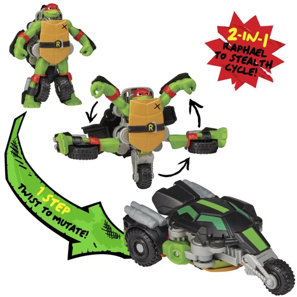 - Pakkaus sisältää Raphael -figuurin, joka muuntautuu helposti ajoneuvoksi ja takaisin figuuriksi.