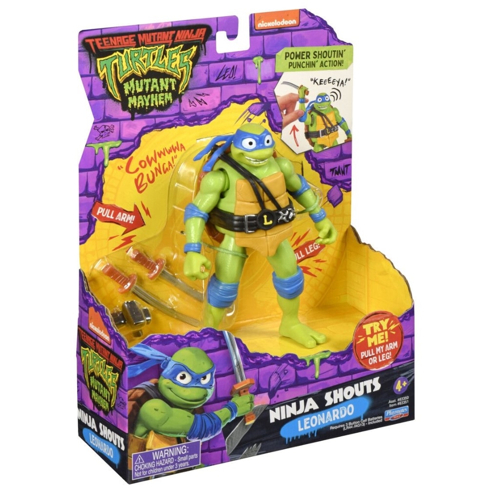 Turtles Ninja Shout Leonardo – Huuda tälle 14 cm korkealle Ninja hahmolle, niin hän huutaa sinulle takaisin – autenttisella elokuvaäänellä.