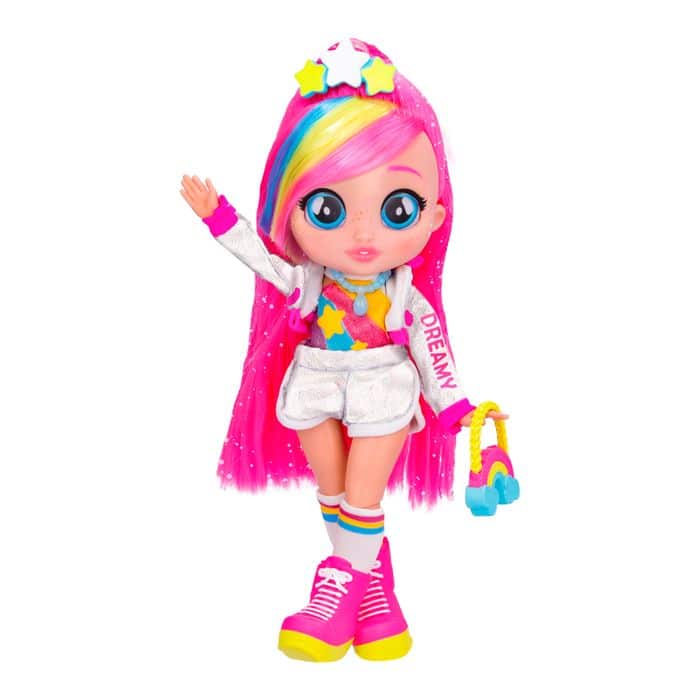 - Dreamy-nukella on sateenkaaren väriset hiukset ja persoonallisia vaatteita ja asusteita.