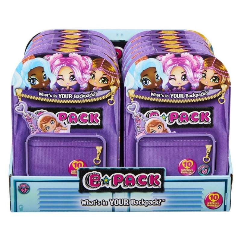 Mitä repussasi on? Tässä siistissä koulurepun näköisessä paketissa on hienoja koristeita, jotka voit kiinnittää esimerkiksi reppuusi, avaimenperääsi tai laukkuusi. Pakkaus sisältää 10 yllätystä: pienen nuken, nukenvaatteet ja neljä kiinnitettävää koristetta. Ikäsuositus: 5+ vuotta. Huom! Nukkea, sen varusteita ja avaimenperiä ei voi valita, vaan on yllätys, mitä paketissa on.