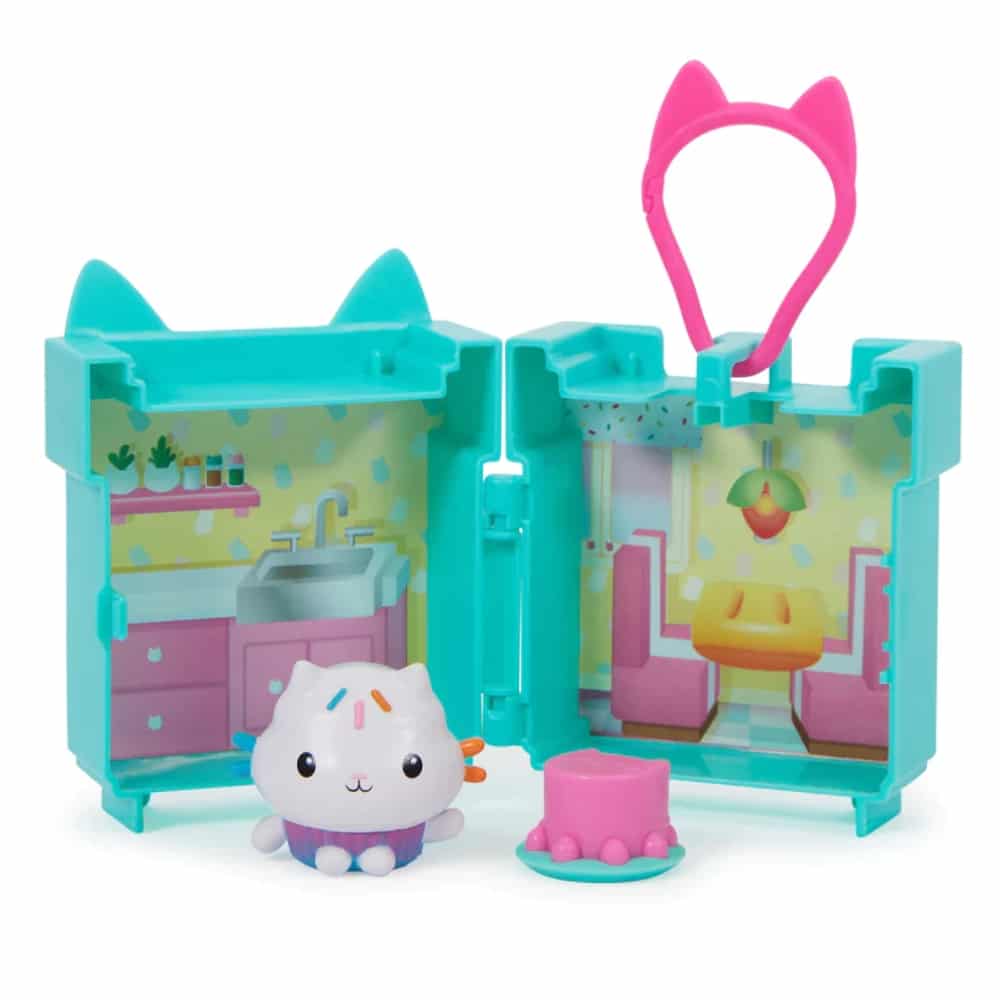 Nauti kuvitteluleikistä tien päällä Gabbyn Nukketalon klipsi leikkisetin avulla. Tässä kannettavassa leikkisetissä on Gabbyn kissamaisen mahtava ystävä Merikatti supersöpössä nukketalokylpyhuoneessa, ja sen mukana tulee miniatyyri nukketalohuone, jossa on muovinen reppupidike, joten voit ottaa sen mukaasi, minne tahansa. Gabbyn Nukketalo -sarjan fanit rakastavat kiinnittää tämän minileikkisetin laukkuun tai reppuun ja ottaa jännittävät nukketaloseikkailunsa mukanaan, minne he menevätkin.