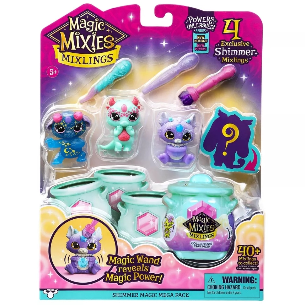 Magic Mixies Mixlings 4 hahmoa.Tee taikoja kotona Magic Mixies Mixlings Shimmer Mega Pack -mixlingsien avulla. ”Magicus Mixus!” Valmistaudu tekemään tositaikoja ja tutustu Magic Mixies Mixlingien maailmaan! Pakkaus sisältää: neljä ainutlaatuinen Shimmering Mixling, kolme taikasauva ja taikapadan. Ikäsuositus: 5+ vuotiaille.